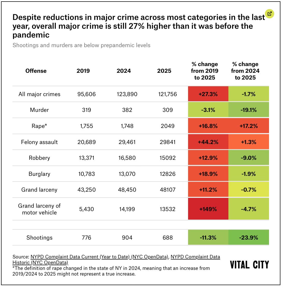 Vital City looks back at the 2025 crime trends in NYC with a lot of tables and charts.