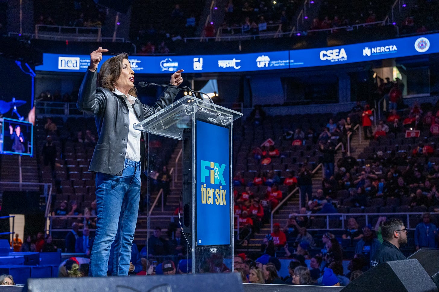 Governor Kathy Hochul (and a handful of the Legislature’s Republicans) attended a “Fix Tier 6” rally in Albany this month. She boasted about previous tweaks instead of committing to future changes.